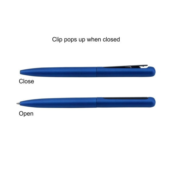 Sleek in appearance, this twist-action pen is crafted from solid aluminium and features a self-retracting clip that folds away when the pen is in use. This allows for both comfortable writing, as the clip does not come into contact with the hand as well as ease of insertion into a pocket.