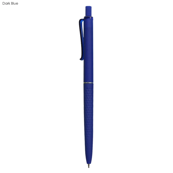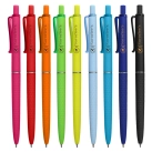Solid plastic pen with coloured transparent clip slim design and textured comfortable soft-touch grip satin finishing barrel with a shiny chrome ring. Click action with high quality cross-type German manufactured black ink refill 1200 meters writing distance tungsten carbide ball which brings you the better writing quality. Comes standard with black ink but blue ink is available on request.