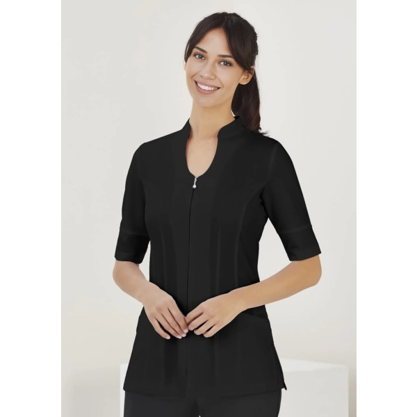 Features: Biz Collection Eden tunic, with Dupont™ Teflon® stain release stretch fabric.