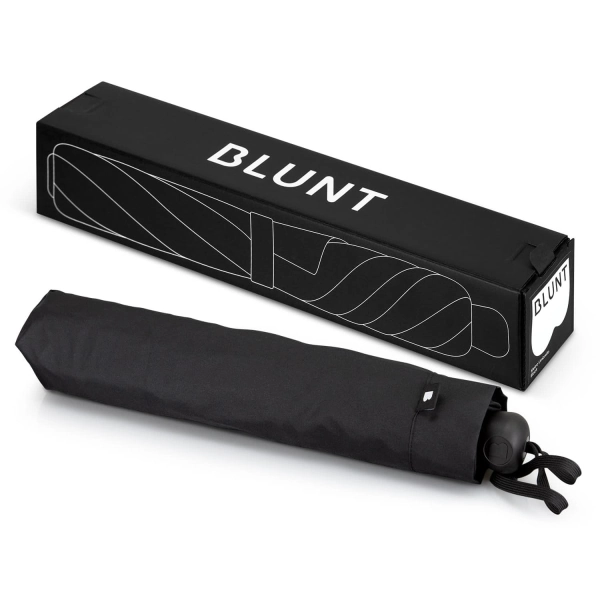 The BLUNT UV Metro umbrella is compact, convenient, collapsible, and perfectly sized to provide excellent coverage from the sun without taking up too much street space. The 190T pongee canopy with a special blackout canopy that provides a UPF rating of 50+, opens automatically with the push of a button and the six-rib, 55cm aluminium and steel frame is designed to withstand winds of up to 88km/h. All BLUNT umbrellas feature patented tips which open like miniature umbrellas within pockets at the canopy edge to reinforce the umbrella. They also create even tension across the canopy and give BLUNT umbrellas their highly recognisable trademarked shape. The BLUNT logo is subtly debossed on the easy-grip handle and discreetly branded on the edge of the canopy and the Velcro closure strap. Metro has a matching pongee sleeve with a side zip and is presented in an unbleached cardboard box.