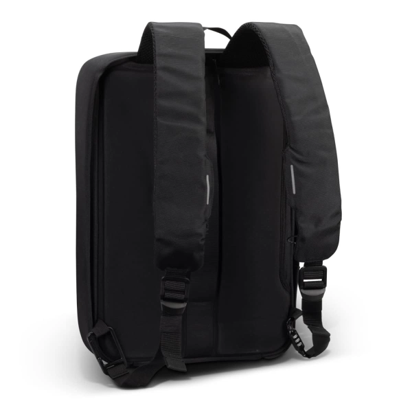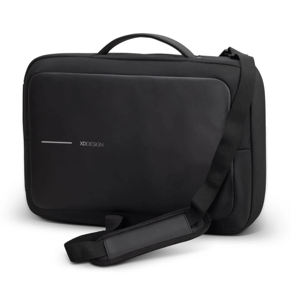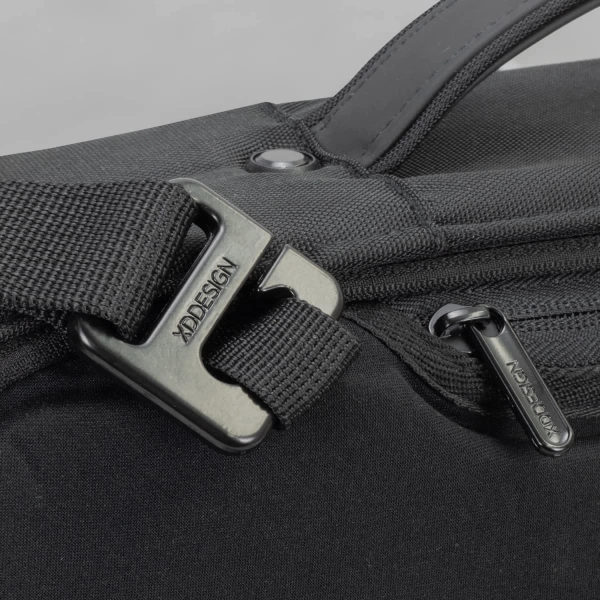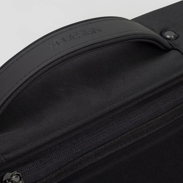 Exceptional 10L anti-theft backpack from XD that doubles as a secure briefcase, keeping belongings safe on daily commutes. Made from high-quality cut-resistant 900D polyester with PU coating and a reflective print, Bizz has two compartments padded with anti-shock foam that will fit a laptop up to 15.6" and a tablet up to 10". Easily attach a power bank to the built-in USB charging port to charge devices on the go. A built-in metal frame helps to protect items and ensure the bag retains its shape on any adventure. With a comfortable carry handle and padded shoulder straps that can be removed and stowed away, this versatile bag features an integrated zinc alloy lock, making it the perfect accessory for anyone on the go.