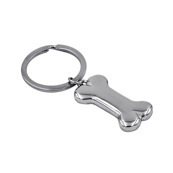 Shinny chromed dog bone shape key ring made of zinc alloy. Excellent advertising tool for dog stores and nice gift for dog lovers! Ideal for any pet related company presented in a black gift box.