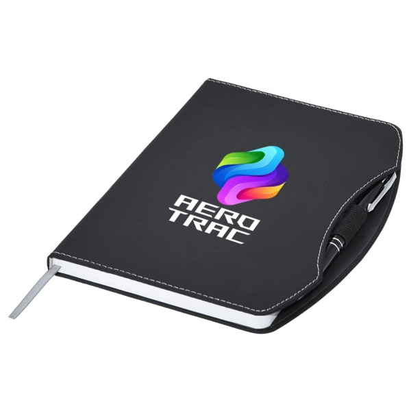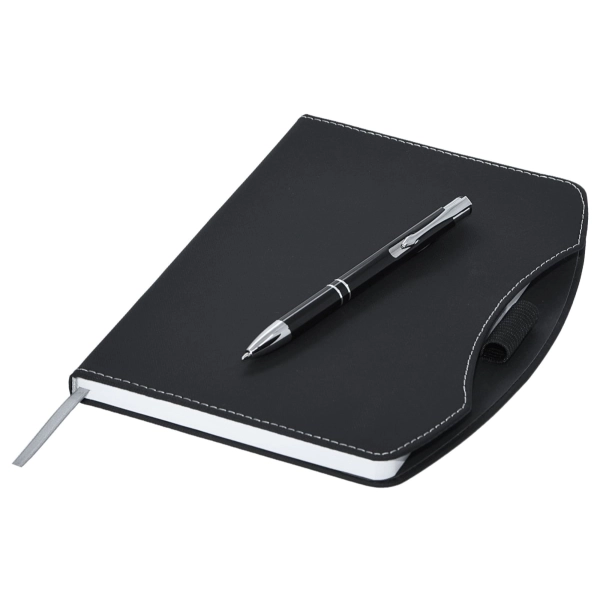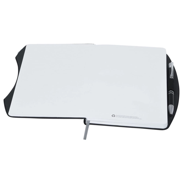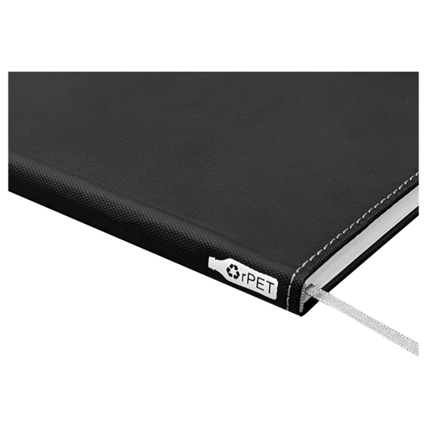 Are you after a stylish Eco-friendly notebook, then check out Boston rPET A5 Notebook. Featuring a curved hard cover made from Recycled PET (rPET is a material made from recycled items such as water bottles) and Recycled paper, as well as a stylish metal pen, pen loop and marker ribbon. In order to inform the user of the environmental credentials of this product we have printed a rPET logo onto the spine as well as recycled information onto the inside front page and a recycled logo onto each inner page.