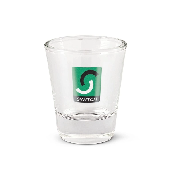 Standard 30ml shot glass which laser engraves to a natural etch. This product is not dishwasher safe and handwashing is recommended.