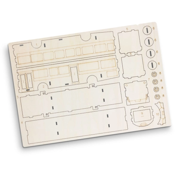 Step into a world of creativity and craftsmanship with BRANDCRAFT's wooden models. Designed to unleash the inner child in any audience, this model bus is expertly laser cut from an A4 sheet of Basswood, a lightweight and strong wood perfectly suited for crafting. The interlocking design means that pieces easily slot together and no tools are needed for assembly. Presented in a brandable cardboard sleeve with assembly instructions, this is an engaging promotional product or gift for adults and children alike. Add your brand to the natural Basswood material or add your brand and colours to the default digital template to bring your brand to life.