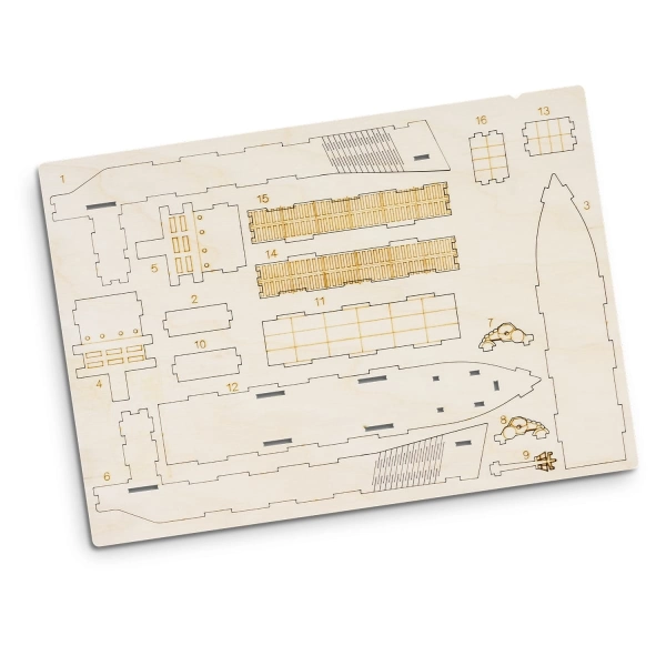 Step into a world of creativity and craftsmanship with BRANDCRAFT's wooden models. Designed to unleash the inner child in any audience, this model cargo ship is expertly laser cut from an A4 sheet of Basswood, a lightweight and strong wood perfectly suited for crafting. The interlocking design means that pieces easily slot together and no tools are needed for assembly. Presented in a brandable cardboard sleeve with assembly instructions, this is an engaging promotional product or gift for adults and children alike. Add your brand to the natural Basswood material or add your brand and colours to the default digital template to bring your brand to life.