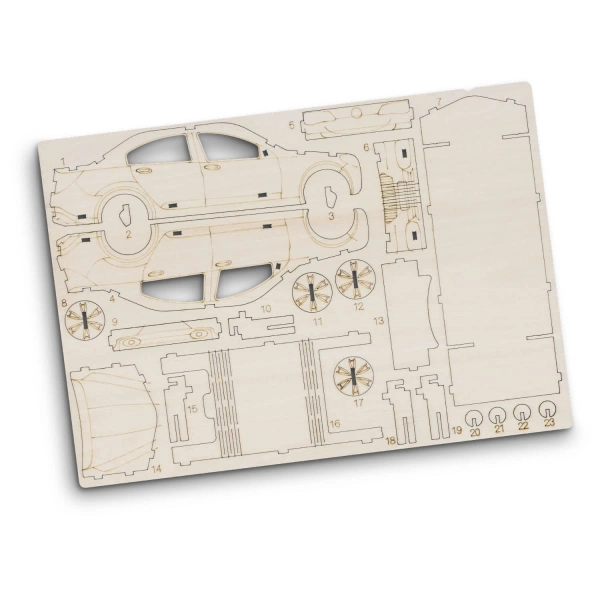 Step into a world of creativity and craftsmanship with BRANDCRAFT's wooden models. Designed to unleash the inner child in any audience, this model sedan car is expertly laser cut from an A4 sheet of basswood, a lightweight and strong wood perfectly suited for crafting. The interlocking design means that pieces easily slot together and no tools are needed for assembly. Presented in a brandable cardboard sleeve with assembly instructions, this is an engaging promotional product or gift for adults and children alike. Add your brand to the natural Basswood material or add your brand and colours to the default digital template to bring your brand to life.