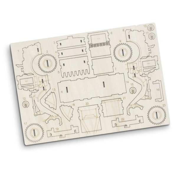 Step into a world of creativity and craftsmanship with BRANDCRAFT's wooden models. Designed to unleash the inner child in any audience, this model wheel loader is expertly laser cut from an A4 sheet of Basswood, a lightweight and strong wood perfectly suited for crafting. The interlocking design means that pieces easily slot together and no tools are needed for assembly. Presented in a brandable cardboard sleeve with assembly instructions, this is an engaging promotional product or gift for adults and children alike. Add your brand to the natural Basswood material or add your brand and colours to the default digital template to bring your brand to life.