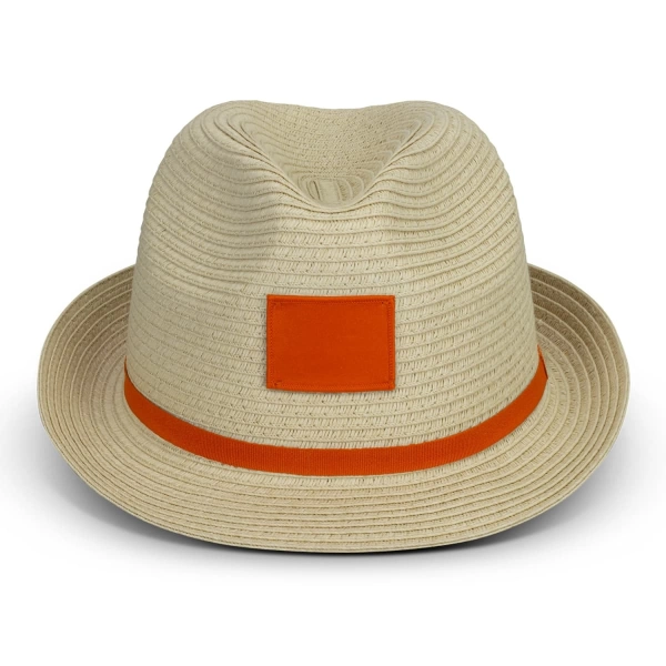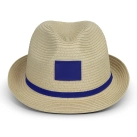 Classic paper weave fedora hat with a coloured polyester ribbon which features a patch for convenient and prominent branding.