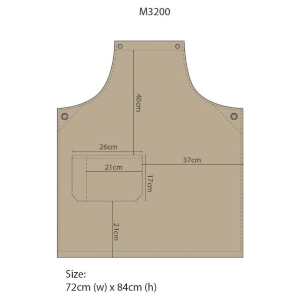 This durable cotton canvas bib apron, made from 100% cotton canvas (260gsm), combines both style and functionality. It features waist pockets for easy access to essentials and reinforced designer rivets for extra strength. With brass metal buttons adding a sophisticated touch, the apron offers a perfect fit with a size of 72cm (w) x 84cm (h). Ideal for any task, it provides comfort and durability. Please note, straps are sold separately.