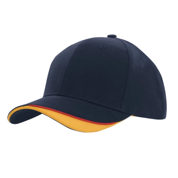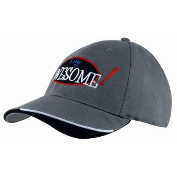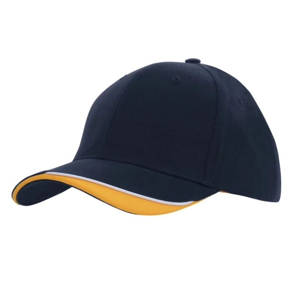 This brushed heavy cotton cap features a structured six-panel, low-profile design with a unique indented peak for added style. The pre-curved peak offers classic appeal, while the fabric strap and buckle provide a secure and adjustable fit. Perfect for everyday wear, this cap combines comfort with a refined, timeless look.