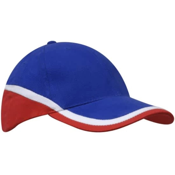 Stand out with this brushed heavy cotton tri-coloured cap, designed for a stylish and sporty look. The structured low-profile design provides a comfortable fit, while the pre-curved peak adds a classic touch. Finished with a fabric strap and buckle for easy adjustments, this cap is perfect for everyday wear.