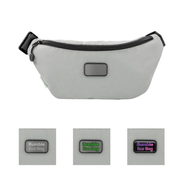 The Bumble is made from 2 recycled♻ PET bottles. This versatile bum bag is perfect for daily essentials, making it a useful corporate gift. It allows you to carry essential items like your wallet, keys, phone, etc. It is perfect for active people who like day trips, hikes or travelling. Main SBS zipper compartment, Inner zipper compartment, Adjustable strap, Waterproof and stain-repellent material. Material RPET.