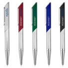 Trendy stylish metal pen slim line body with shiny silver fittings twist action with Metal Cross-Type German manufactured black ink refill 1200 meters writing distance tungsten carbide ball provides you with quality writing.