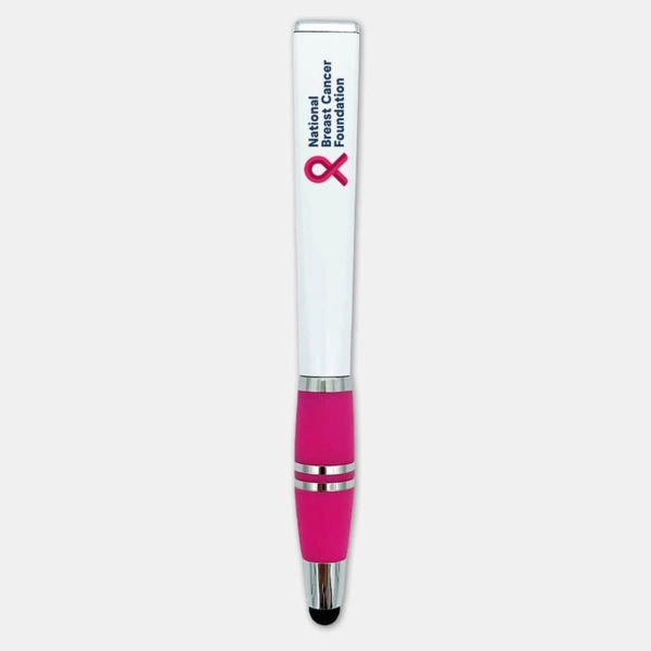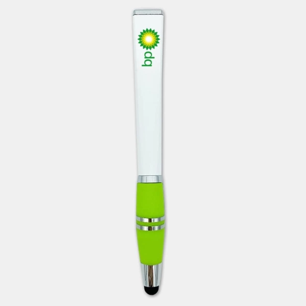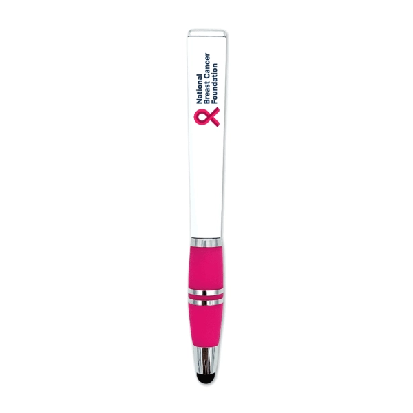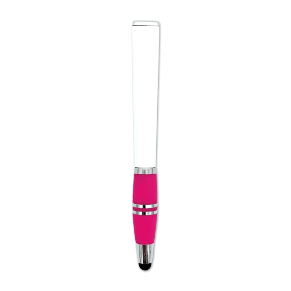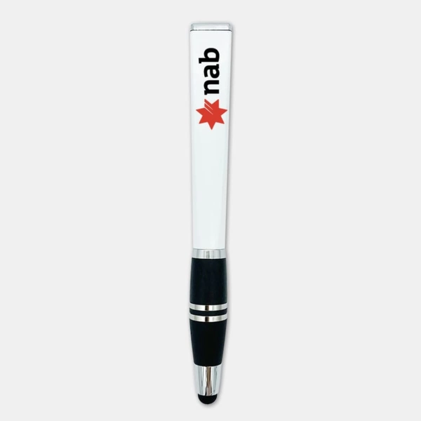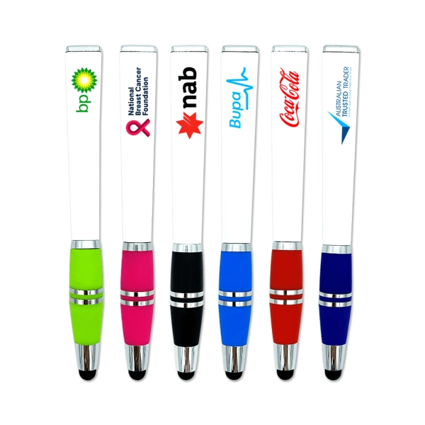 The Byron Pen is a sleek, dual-purpose tool that’s sure to make your brand stand out. With an ergonomic twist-action design, it’s comfortable to hold, while the stylus tip makes it perfect for smartphones and tablets. The minimalistic white barrel and 6 vibrant silicone grip colours bring a pop of personality to your marketing materials. It’s the ideal pen and stylus combo that’s as handy as it is eye-catching.