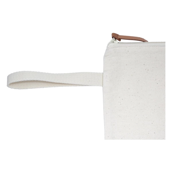 Options – select either: (1) natural or black coloured zip, (2) natural cotton zip puller or leatherette zip puller, (3) cotton handle, (4) debossed logo onto the leatherette badge or screen printed directly onto the calico material (additional charges apply for some of these options – see below).