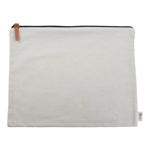 Options – select either: (1) natural or black coloured zip, (2) natural cotton zip puller or leatherette zip puller, (3) cotton handle, (4) debossed logo onto the leatherette badge or screen printed directly onto the calico material (additional charges apply for some of these options – see below).