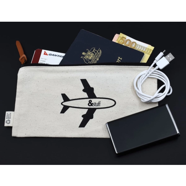Calico Travel Pouch is ideal for keeping all your travel documents and accessories safe and secure. Ideal for storing your passport, boarding pass, travel cash, itinerary, battery charger and charging cables. Your logo can be printed or debossed on one side of the pouch with our &Stuff icon printed on the reverse side.