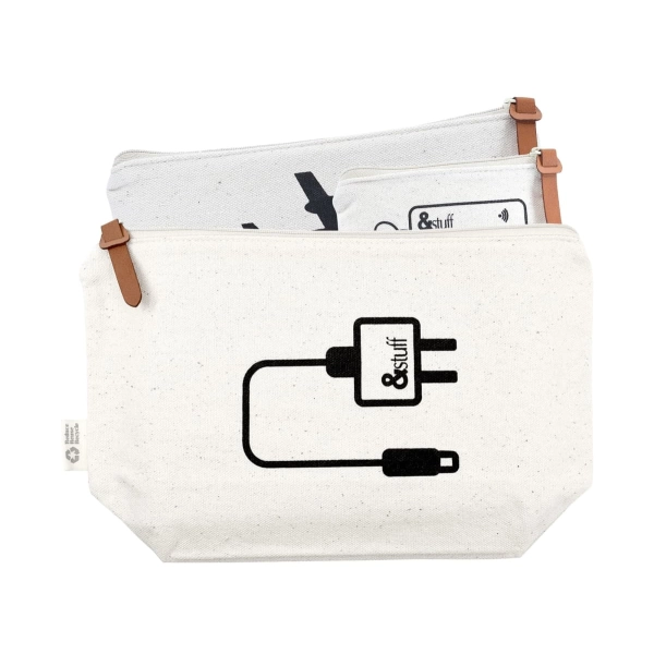 &Stuff is a range of user-friendly products designed with the environment in mind. All of the items in this on-trend range are hand made from 100% natural unbleached calico cotton and are durable, washable and reusable. Your logo can be printed or debossed on one side of the pouch with our &Stuff icon printed on the reverse side. Options – select either: (1) natural or black coloured zip, (2) natural cotton zip puller or leatherette zip puller, (3) debossed logo onto the leatherette badge or screen printed directly onto the calico material (additional charges apply for some of these options – see below).