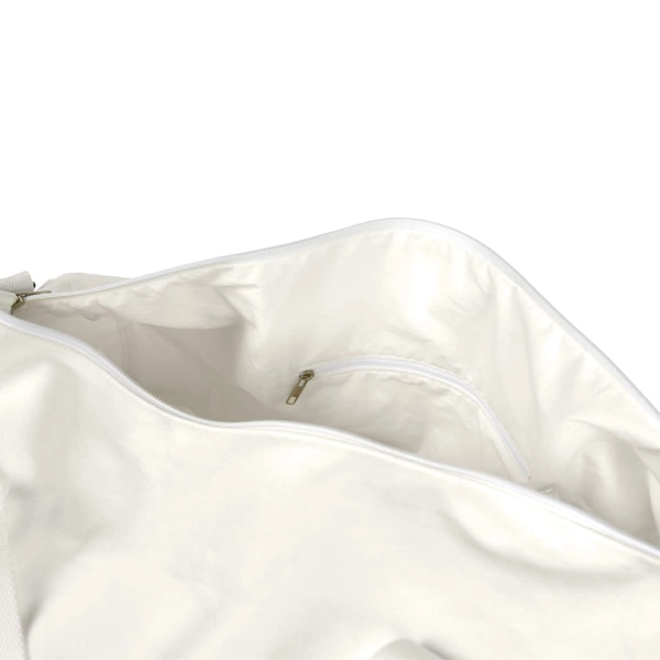One large main compartment, one external zipped compartment, small internal zipped pocket, YKK tonal nylon zip, reinforced adjustable shoulder strap and handles