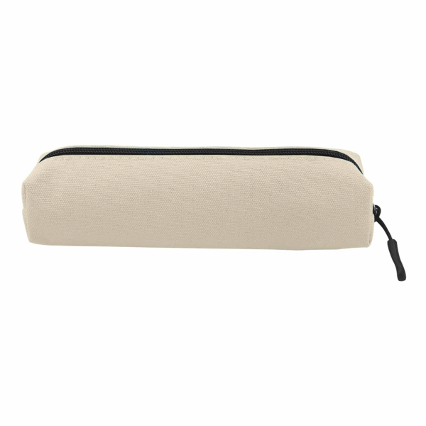 This trendy design pencil case is manufactured from 12oz cotton canvas fabric in a tube shape it also can be used as a cosmetic bag comes with a black zip closure and a large printing area a great promotional product for school office and cosmetic industry.