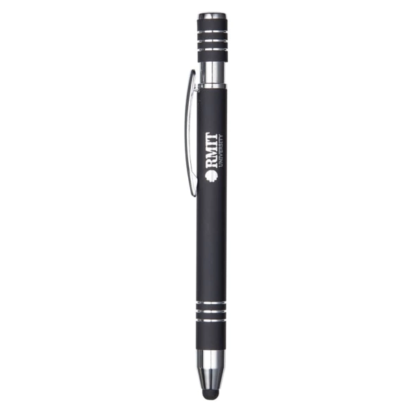 The Capri Pen puts a fresh spin on your writing game with its smooth rubberised finish and matching stylus tip. This click-action metal pen delivers black ink and engraves with a crisp matte contrast that’s hard to ignore. Clean, modern, and ready to impress.