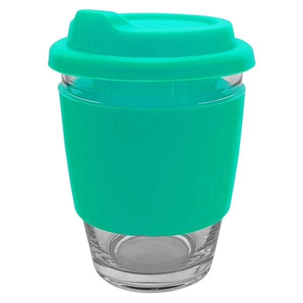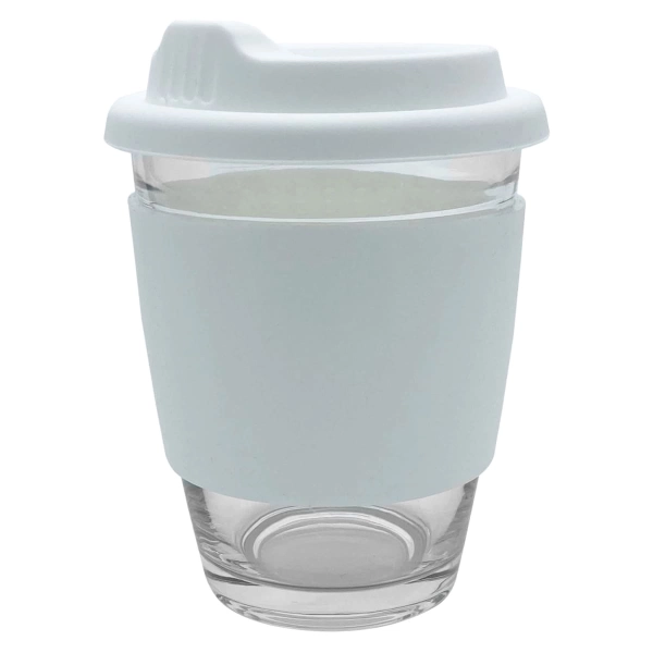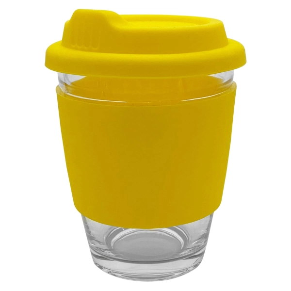 A trendy 340ml reusable glass coffee cup which is made of borosilicate glass the cup has a wide printing area heat-resistant silicone band and push on silicone lid they are made of European standard silicone material in 13 standard colours can be mixed and matched in any colour combination. It is presented in a cardboard box with a window you can also select the gift tube to pack the cup and have your logo printed on the tube. Protect the planet and help to reduce plastic pollution by choose eco-friendly glass coffee cups as a marketing gift. This cup is not dishwasher safe and handwashing is recommended. Note the silicone band/lid is not recyclable material.