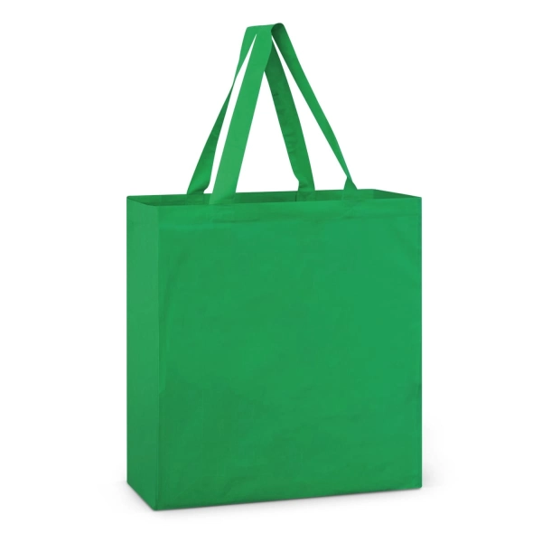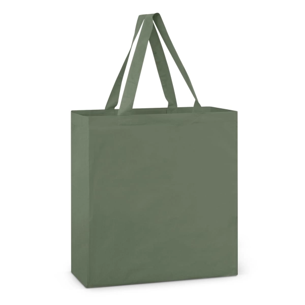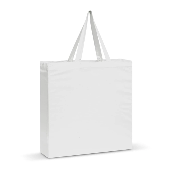 Reusable tote bag with a gusset which is manufactured from 130gsm cotton.