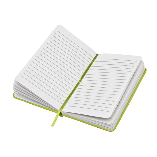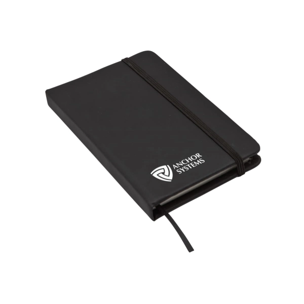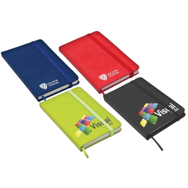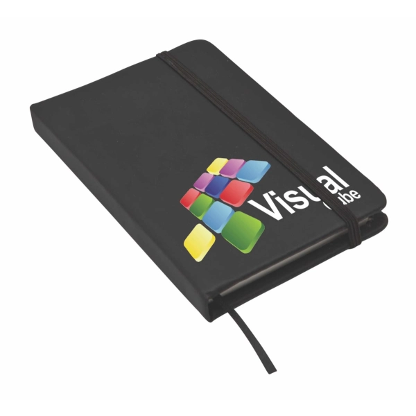 The vibrant colours of these pocket pads have striking visual appeal. Featuring an elastic closure and ribbon marker, they are the ideal size for those on the go and perfectly suited to feature your logo. Available in navy, red, black or green. This product can be printed in full colour for maximum impact.