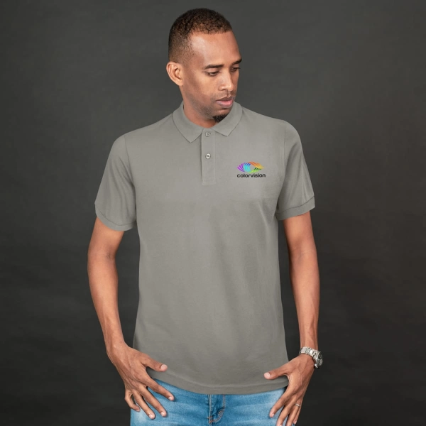 * Smart men's polo made from 60% combed cotton, 40% polyester blend for comfort and durability