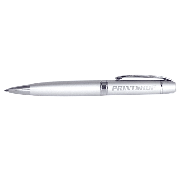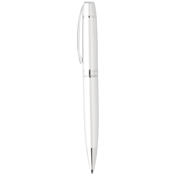 Metal mechanical pencil in matt silver finish with chrome underneath on the cap, 0.9mm lead.