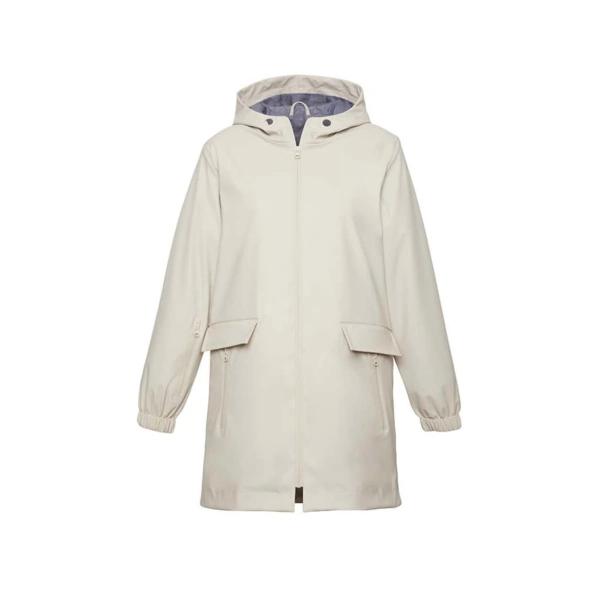 Curved back hem and casual silhouette. Cotton lining through the body, with 2 flap pockets and 2 zip pockets on both sides. Zip pocket on RHS sleeve. Seam sealed throughout body (neck and hood sealed on reverse) and waterproof zips.