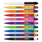 Introducing the Chameleon Pen / Stylus, a versatile twist-action ballpoint pen designed to offer customisation and practicality. With the ability to mix and match barrel and clip colours from a palette of 10 vibrant options, this pen allows you to tailor it to suit your logo or personal style. The integrated stylus adds touchscreen functionality, while the push-button mechanism ensures smooth operation.