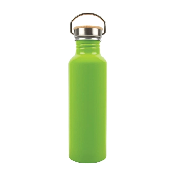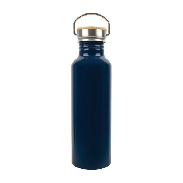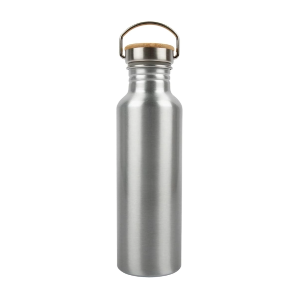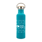 Join the sustainability movement with the Chat Recycled Aluminium Drink Bottle, a 750ml single-walled bottle crafted from recycled aluminium, reducing environmental impact while quenching your thirst. Its leak-free stainless steel screw cap lid, paired with a natural bamboo and folding carry handle, ensures convenience and durability on-the-go. Resistant to shattering, odours, and stains, this bottle maintains its sleek appearance over time. Designed for cold beverages only, it's not suitable for carbonated liquids or freezing. For long-lasting logo vibrancy, hand washing is recommended.