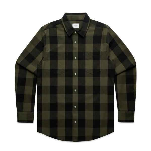 Check design, double chest pockets, Long sleeve button-up shirt, clear buttons, adjustable cuffs, back yoke, side seamed, preshrunk to minimise shrinkage