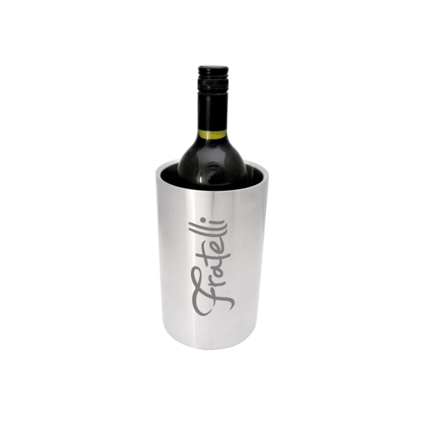 Designed to keep wine cool this stylish double-walled wine chiller is crafted from solid stainless steel and makes the perfect executive gift.