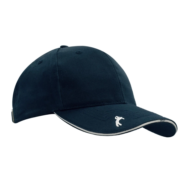 Classic style meets premium detail in this chino twill golf cap, featuring elegant peak embroidery for a refined look. The structured six-panel, low-profile design ensures a secure and comfortable fit, while the pre-curved peak adds timeless appeal. Finished with a fabric strap, embossed buckle, and metal slit for a sophisticated touch, this cap is perfect for golfers and everyday wear alike.