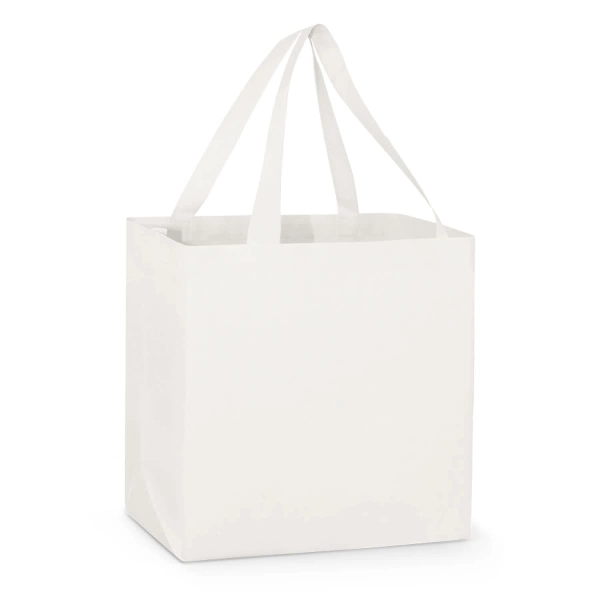 Large reusable tote bag without a reinforced base board which offers an affordable price point and is ideal for carrying bulky items and groceries. It is manufactured from 90gsm non-woven polypropylene material.