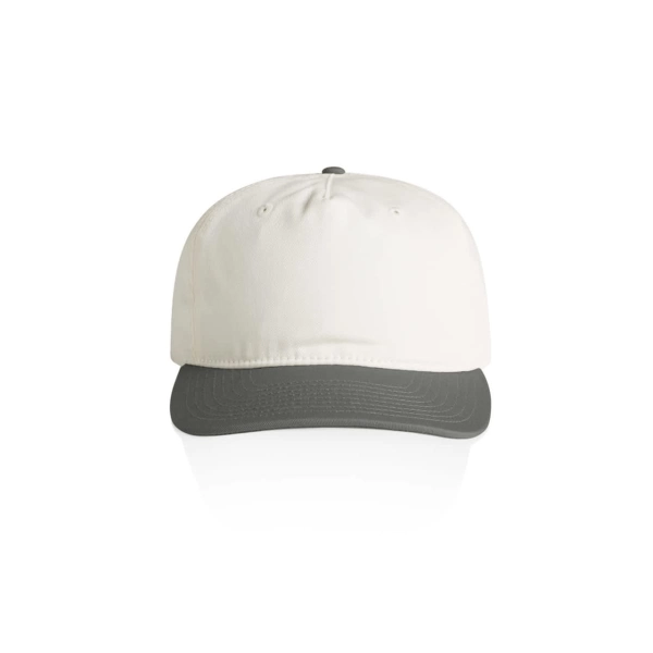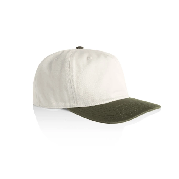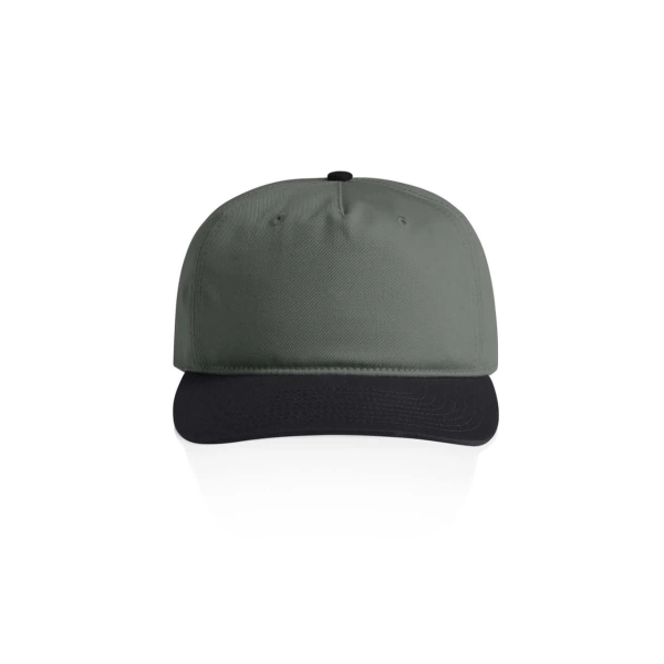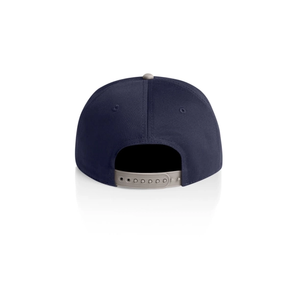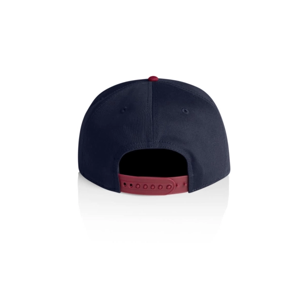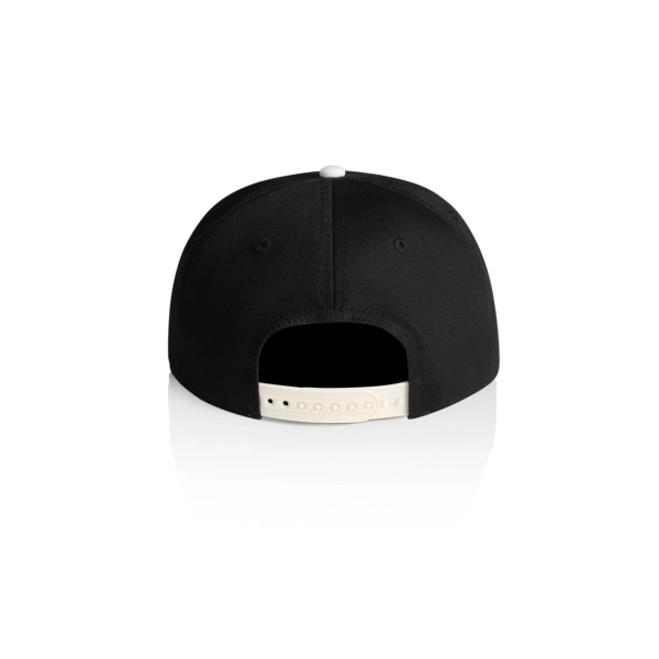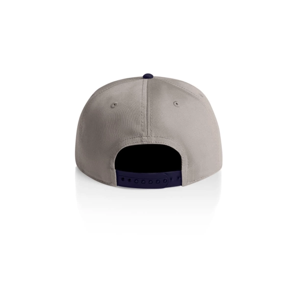Introducing the AS Colour Class Two-Tone Cap: A lightweight, mid-profile five-panel cap crafted from 100% cotton. Featuring a stylish contrast dome, flat peak, plastic snapback closure, and tonal eyelets for ventilation. One size fits all, with the convenience of a tear-out AS Colour label for customised wear.