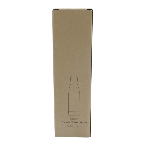 The 500mL Classic Bottle is designed for lasting temperature control. Made from double-walled stainless steel with vacuum insulation, it keeps drinks hot or cold for hours. Crafted from food-grade stainless steel and BPA-free, each bottle comes individually gift-boxed in a natural kraft box. Hand wash only. Do not freeze or microwave.