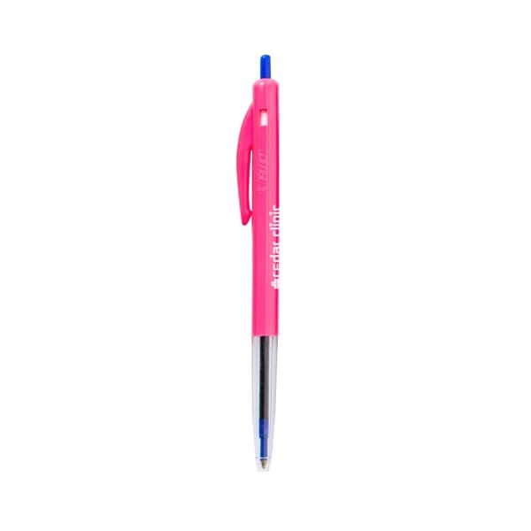 Bic Clic is a great value promotional product. It’s a slim, retractable ballpoint pen with a break-resistant pocket clip. They are a range of marketing pens that offer a lot of features at an incredibly low price. It has a round barrel design and tungsten ball tip that provides a smooth and consistent writing experience. Ridges provided on the barrel improve writing control.