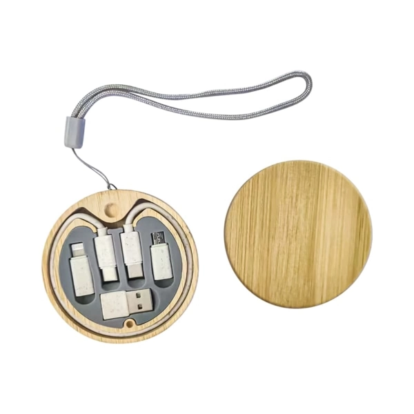 The Coburg Eco 3n1 cable set can be used with most smartphones or tablets, providing charging and data transfer options. With a Type-C cable and a comprehensive set of adaptors (Type-C to Lightning, Type-C to Micro and Type-C to Type-A adaptors), the Coburg is neatly packed in a compact, silicone-lined bamboo travel case. Suitable for use with all portable devices, including smartphones and tablets. Material: Bamboo, Wheat straw, Silicone.