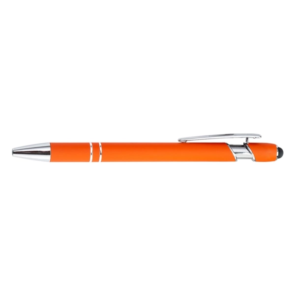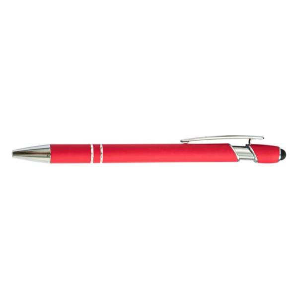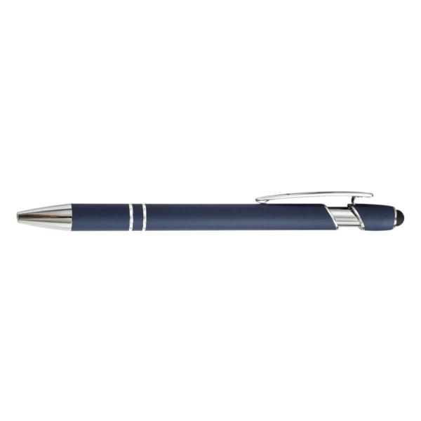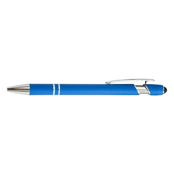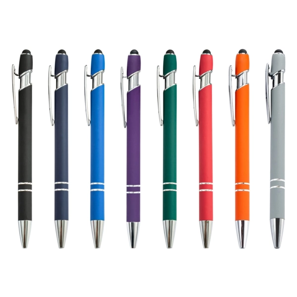 The Colombo Stylus Pen combines modern design with everyday functionality. Crafted from lightweight aluminium and finished with a premium rubber-feel barrel, it offers a smooth writing experience with black ink and the added convenience of a touchscreen stylus. Ideal for the office, events, or on the move, it’s a stylish and practical promotional item available in 8 stock colours – ready to highlight your brand.