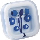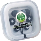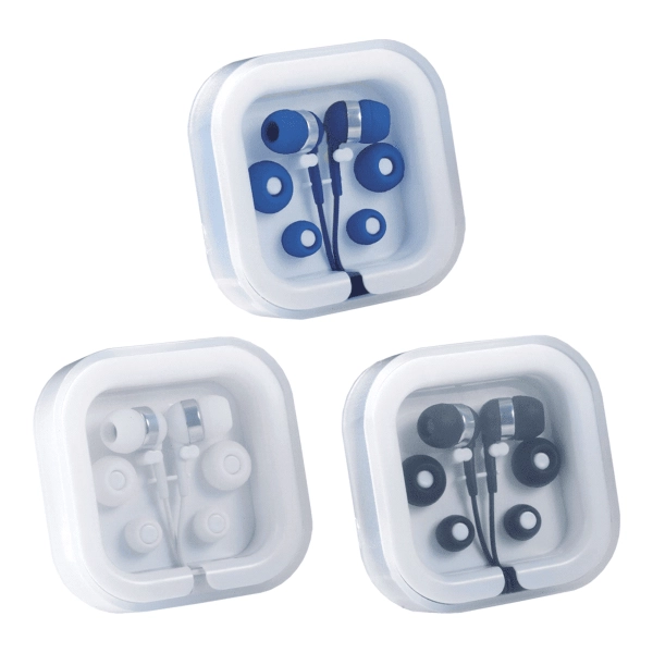 Deluxe earbud set includes a built-in cable microphone that allows you to go hands free with your media device. Easily answer or end a call with single button on the microphone. Set also provides three interchangeable soft rubber earbud covers. Plastic case with cable storage. Standard 3.5mm audio jack, 38-inch earbud cable. Media device not included.