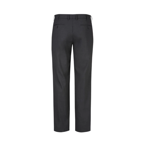Features: Flat front, straight through the leg. Waistband with stretch fusing. Internal security pocket on right front pocket, and two rear pockets.