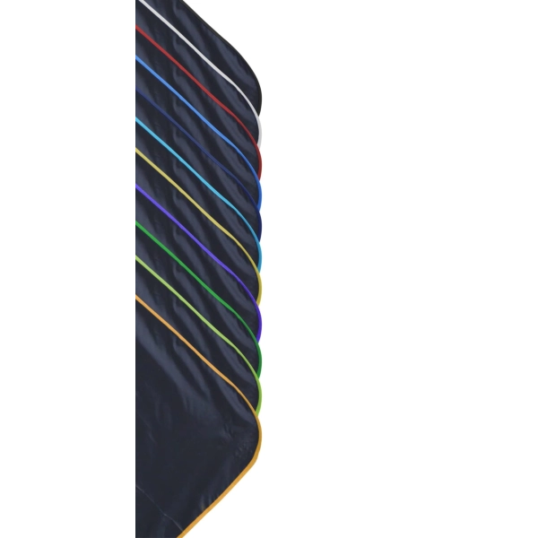At long last, a picnic mat that’s able to fit in your glove box, handbag or attach to a backpack. Made from tough yet light weight 190T polyester, this picnic mat folds into a mini storage pouch. Available with a choice of 11 vibrant trim colours, this water-resistant mat will be a hit with clients and staff. Available in the following trim colours: black, white, red, royal blue, navy blue, light blue, yellow, purple, mid green, lime green, orange.