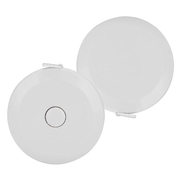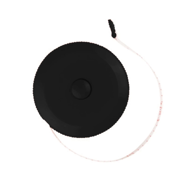Round plastic compact tape measure with locking auto stop and retraction 1.5 meters durable non-stretch soft PVC ruler tape which has both inches and centimetres.