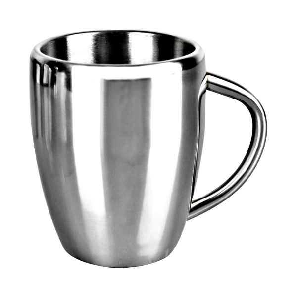 Delightful 200 ml double wall vacuum insulated stainless steel coffee cup with a curved design it keeps the coffee hot for longer and engraves to a natural etch.