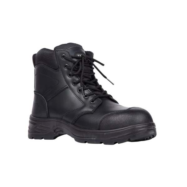 PU/PU sole construction | Oxford padded tongue and collar | YKK zip | 200J impact resistant composite toe cap and leather toe cover | Pull on tab and reinforced heel | Removable extra thick PU insock | Inside mesh lining | Oil resistant, Anti-static sole | SRC slip resistant sole | Individually boxed. Carton of 5 | Meets AS 2210.3:2019 & Certified by BSI BMP No 622279