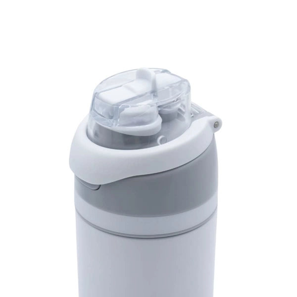 Take on the day with this solid double walled, stainless-steel bottle. Crafted from durable SS304, PP, PE and silicone that is finished with a smooth powder coat, it’s made to keep up with you. The lift-up handle makes carrying a breeze, this bottle gives you the choice—sip from the straw or push the button to drink directly.